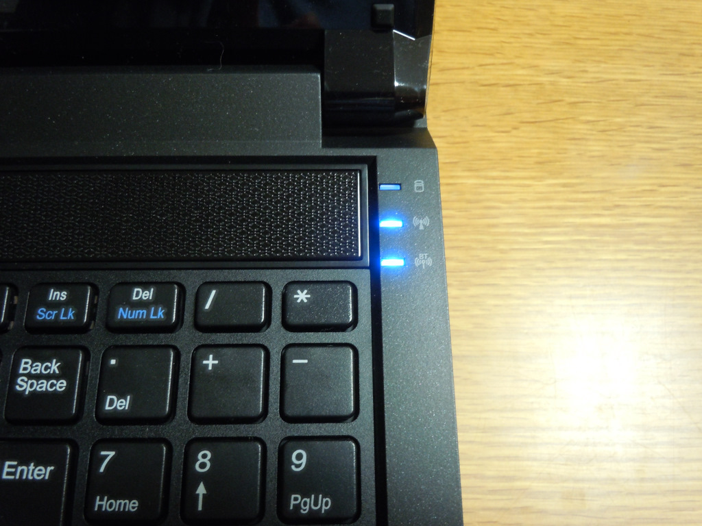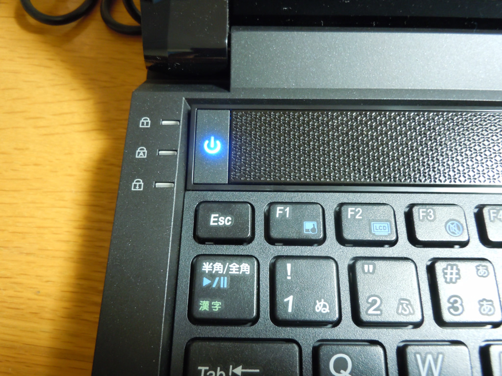右にHDDアクセスランプ, WiFi, BTインジケータが配置されている