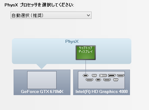 NVIDIA コントロールパネルのPhysX構成で GPU 設定ビジュアライザーにより、