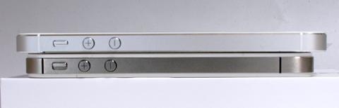 iPhone4Sと比較するとディスプレイサイズの拡大で、縦に大きくなりました。横幅はほぼ同じです。厚みはアルミのフレームからの出っ張りが減って薄くなっています。