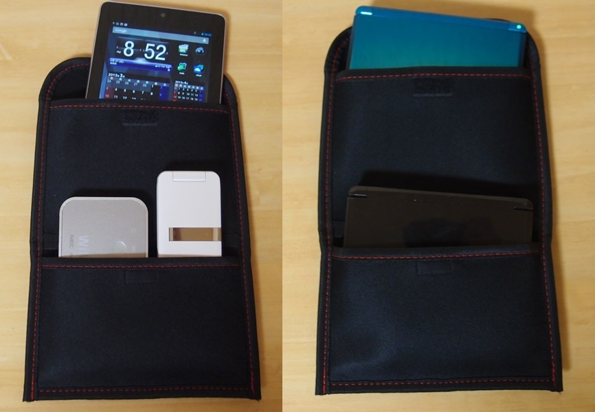 横幅は3DSがちょうど良いサイズで、上ポケットもしたポケットも収まります。