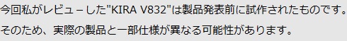 上面から見た、KIRA V832。シンプルだが、上品な面構え。