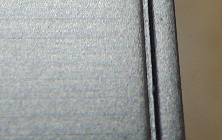 接合部分のアップ。溝の幅は0.4ミリ。剃刀程度の隙間しか無いことがわかる。