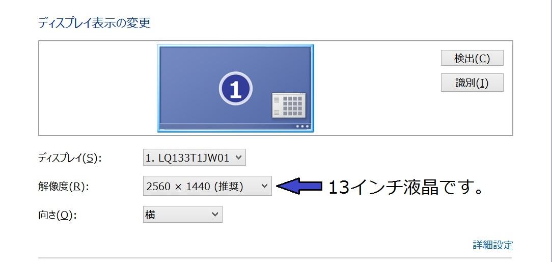 なんと、モニタ自体は13インチそこそこの大きさなのに、解像度は驚きのWQHD(2560x1440)である。