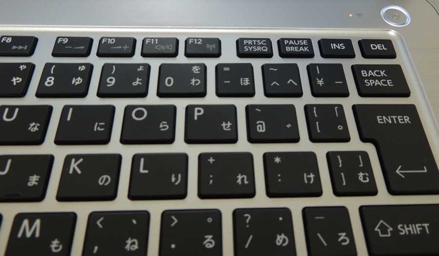 キーボードはパームレスト部分と完全に一体化されており、本体部分の分割線はボトムケースとパームレストのみとなっている。
