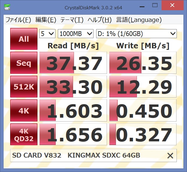 SDカードスロットでのCDM3結果。性能の半分しか速度が出ない。