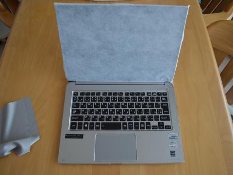 拭いてくださいとのことです クリーニングクロスをキーボードと液晶面に挟んで