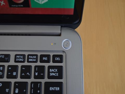 電源入状態の時、電源ボタン周囲が照明されます オレンジLEDは