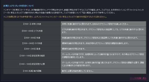 ファイナルファンタジーXIV: 新生エオルゼア ベンチマーク ワールド編を実行時の各