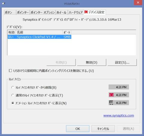 タッチパッド名称はSynaptics ClickPad V1.4/SMBポートです