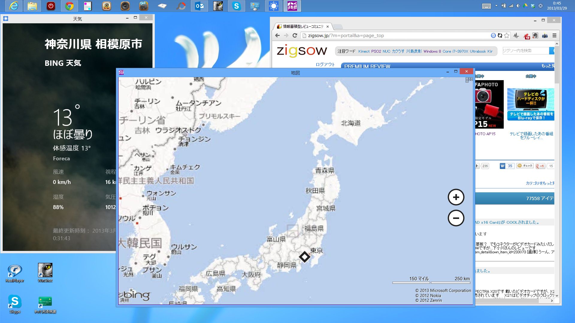 これにより、Windows8アプリとデスクトップアプリがマルチウインドウで表示可能です。