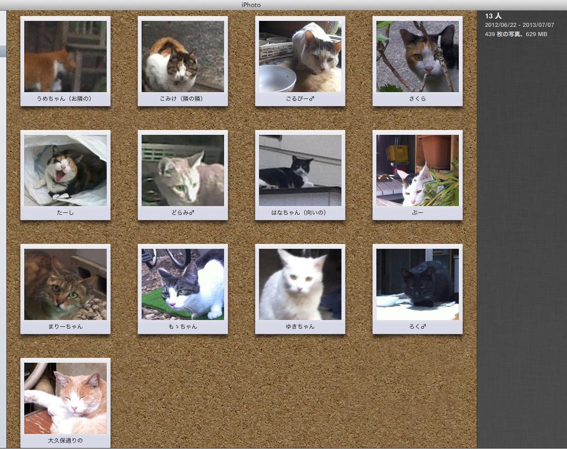 感度の設定にもよりますが,モーション・アラームという機能があり,中程度の感度「5」で一晩に10通ほどメールが届きます。それぞれに5〜6枚の写真が添付されてるので,一夜にして50枚ほどの写真がMailに増えます。iPhotoに保存し,iPhotoが猫顔認識するか試してみようと思います。