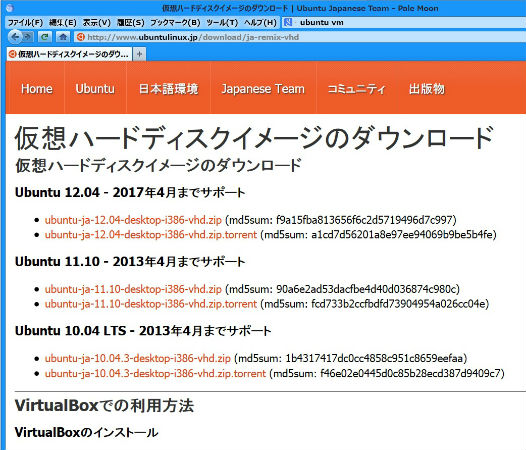 ゲストOSのUbuntu12.04 32ビット は下記からダウンロードしました。