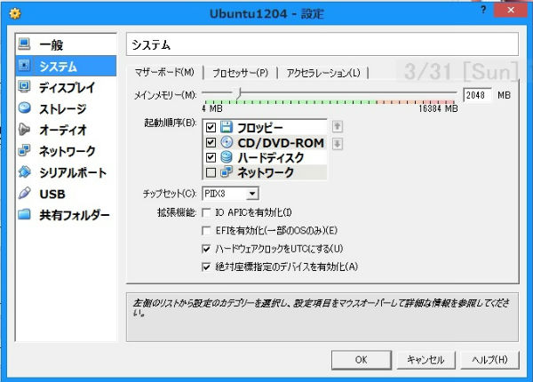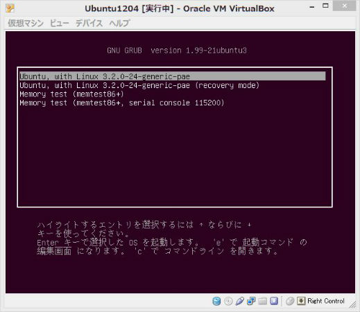 ゲストOSのUbuntu12.04 32ビットのインストール