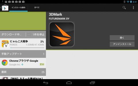 他のAndroid端末と比較すると、Nexus 7では、スコア低いですね。