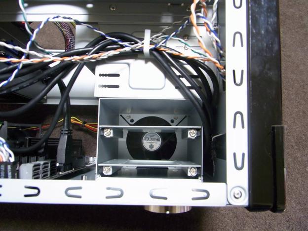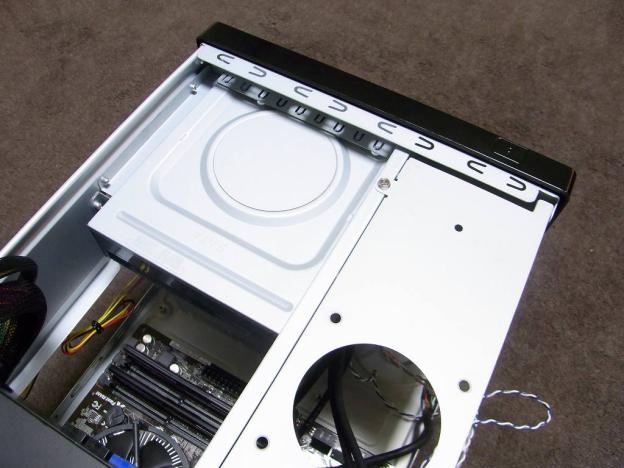 一段下にある5インチベイの空きスペースに、余ったケーブルをねじ込むと良いだろう。