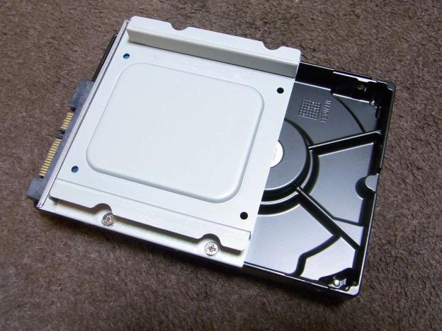 引き抜いたトレイにネジでHDDを固定して、ケージに戻す。