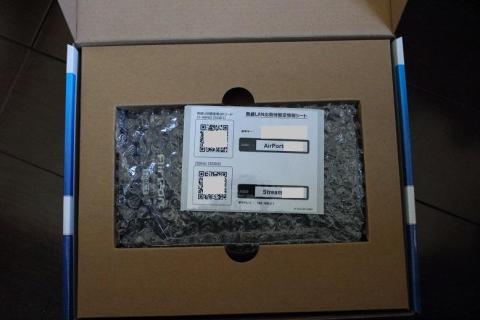 工場出荷時のSSIDや暗号キー、さらに簡単設定できるというQRコードがついてます。(QRコードについては後ほど試します)