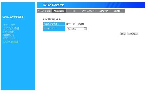 それに対しWN-AC733GRではプルダウンからNTPサーバーを選ぶのみとなってます。