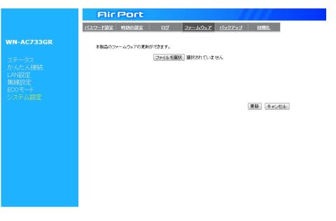 このファームウェアの更新機能はバグ修正などセキュリティにかかわる部分なので自動更新とまではいわないにしてもWZR-300HPのようにインターネット上から自動でファイルのダウンロードと更新をしてもらえるとずいぶん便利になるように思うのですが・・・