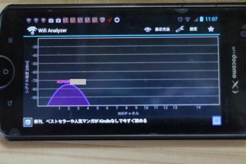 電波強度はwifi analyzerを用いて電波を見てみます。