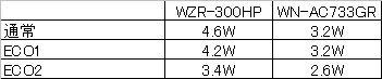 総じてWN-AC733GRの方が消費電力が低くなってます。