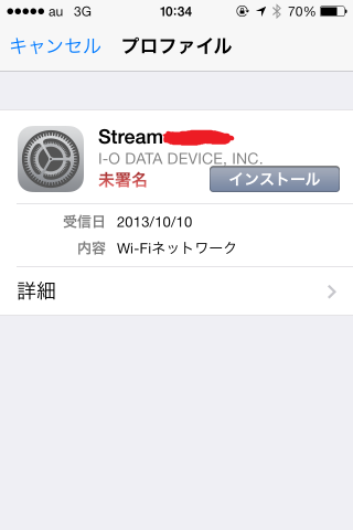 WIFIのプロファイルインストール画面になります。
