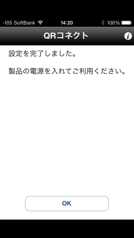 [QRコネクト]アプリを起動して、「設定情報シート」のQRコードを読み込むます。