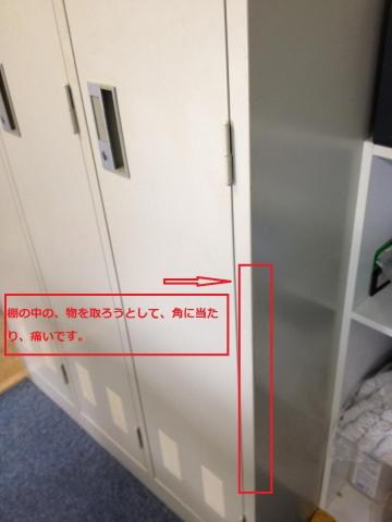 棚の中の物を、取る時についロッカーのカドに頭や腕をぶつけるので、