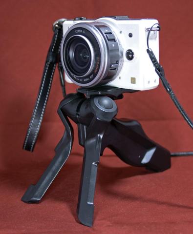この三脚穴用ネジが通常の規格と一緒のおかげで、ハンディタイプにした時にビデオカメラを載せて使うのにも便利です。