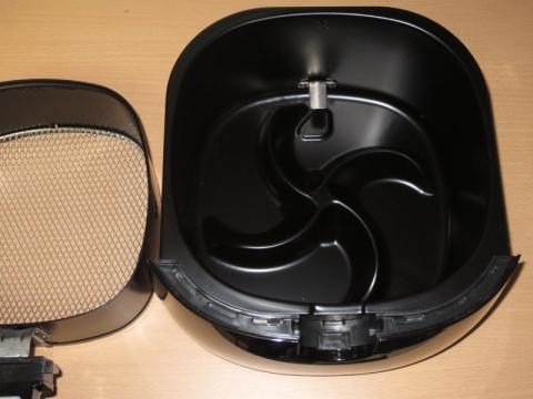 内部構造はどうなっているのか気になるので食材を入れる部分を取り外して覗いて見ると、すぐ上に熱線が見えます。その上からファンで熱風を食材へ送風するようになっているようです。