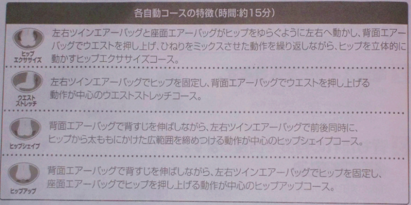 4コ‐スの揉み方があり、1コ‐ス15分でヒップシェイプが