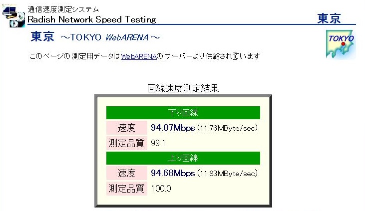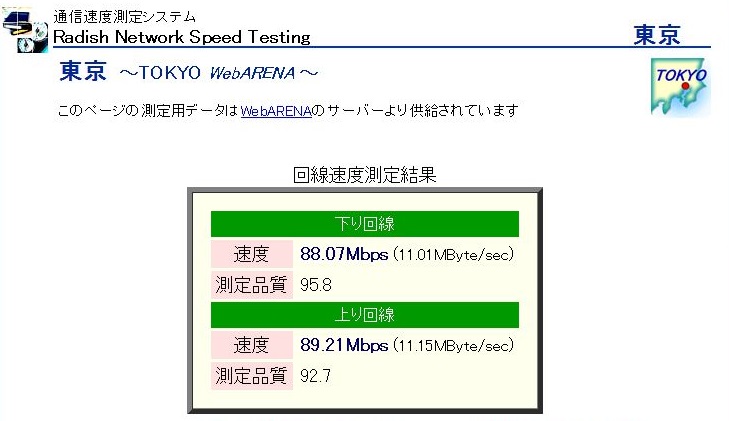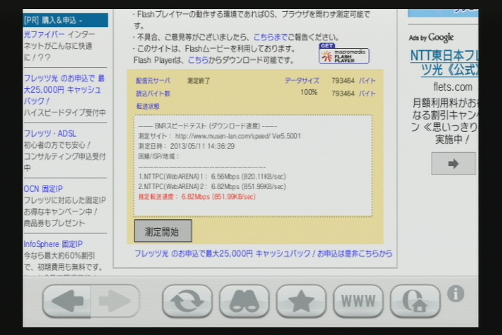 ブラウザはJavaAppletに非対応なので、こちらはBNRスピードテストで実施。