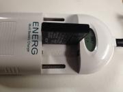 接続すると、充電可能な場合はCHと表示されます。突起部分の上下どちらにプラスマイナスの端子を合わせるかは指定されていませんが、試してみたところどちらでも充電可能です。