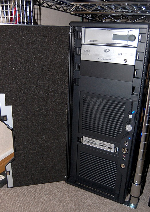 という訳で何に使ったかというとこのオンボロPCケースのサイドパネル。1980円のケースに通常価格1500円の板使うとか…割引券無かったらネジや消耗品類計2000円超えて逆転するところだったぞ!