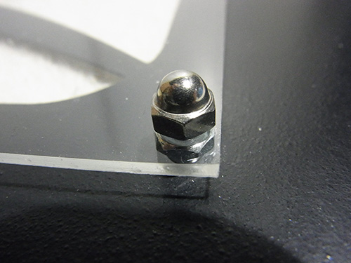 ネジ→ワッシャー→サイドパネル→ナット→アクリル板→袋ナットとつけて固定する。