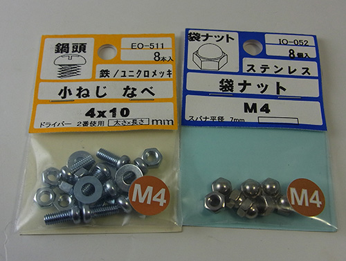 固定方法はもちろん変更。ネジナットセットに袋ナットセットをあわせて買ってきた。。コイツを裏側から順に…