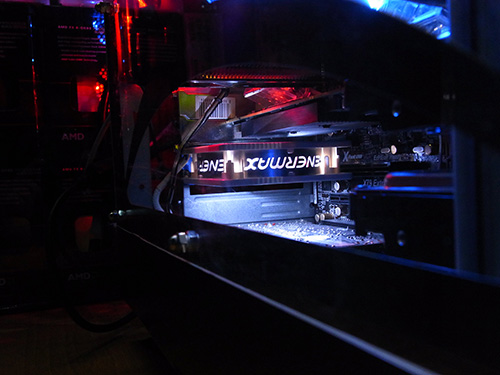 サイドパネルとアクリル板の間にナットを入れたのはスペーサー代わり。CPUクーラーのヒートパイプが本来のサイドパネルよりも更に張り出している&8cmファンの固定部がやはり若干外側に張り出しているのでアクリル板を傷つけそうだったため。