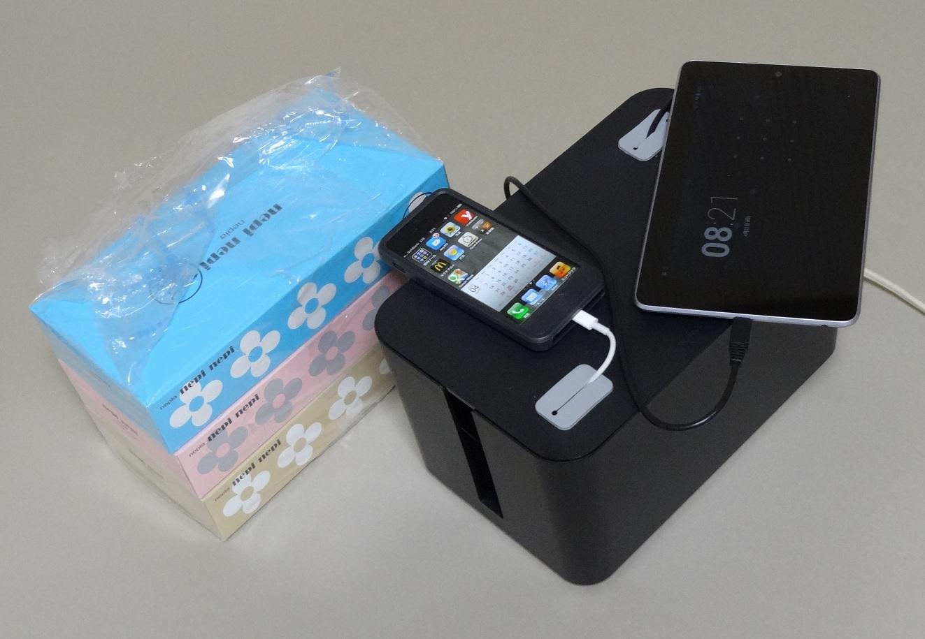 難点はティッシュ箱3個分という高さ 天板はフラットなのでスマホやデジカメが置けます