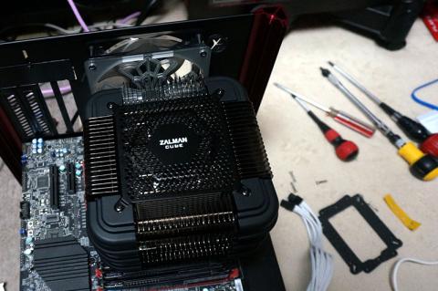で、最後の難関がこの「クーラーの隙間から最後の固定ネジを付ける部分」。同じように隙間からネジを固定するクーラーは他にもあるがそういう場合専用の長いドライバーを付属してくれていたりするのだがコイツにはそれがない。