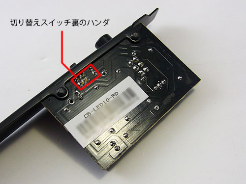 どうもこの切り替えスイッチ裏のハンダがブラケット部に近すぎるのか、ケースに装着するとケースとブラケットが絶妙な位置に組み合わさってショート、常に消灯状態の回路になってしまっていたらしい。まあこれは私が使用したケースの構造の問題もあるので運の悪い相性だ。