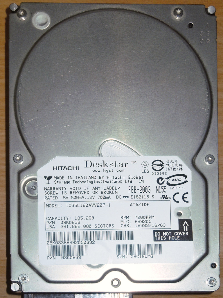 Deskstar 180GXPシリーズの 180GB HDDです。