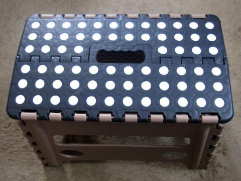 足をのせさせ、ブラブラ防止することにしました。使わなくなっても、持ち運びが楽そう&置き場に困らなそうなので