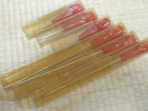 中は6本セットで、プラスティックのケースに入っています、昔はなんて無駄なことだと思っていましたが、あまり使わない工具なので、このケースが無いと錆が出まくるので、よく考えられているなあと使って10年たって思っています