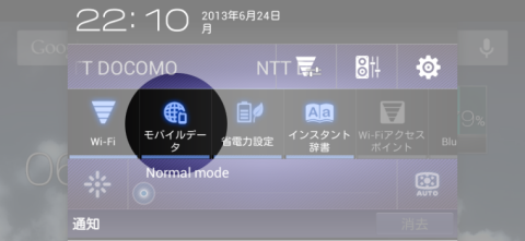 最後に「モバイルデータ」を有効化すれば、3G 回線での通信が行えるようになります!