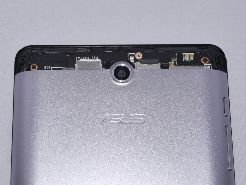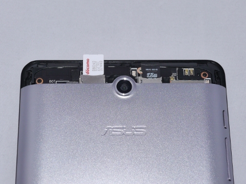 ここで裏面上部のカバーを外し、SIMやSDカードを入れておきます。