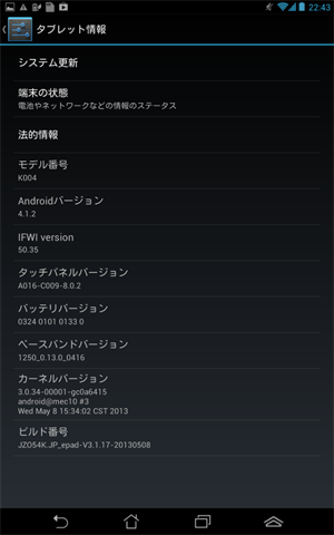 ビルド番号が「V3.1.17-20130508」となっていました。ASUSのHPを見ると「V3.2.3」にUp