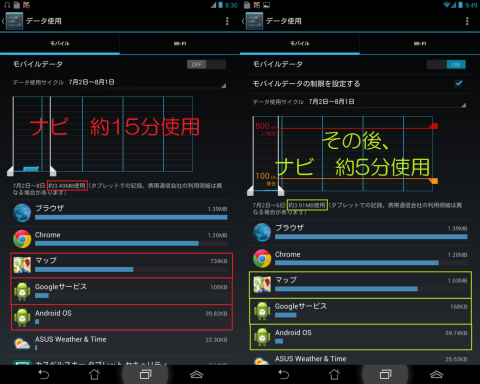 ナビだけでは、思ったより通信量が少なくて済みそうです。