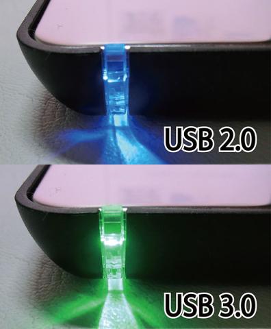 一般的には、USB 3.0の時に、青LEDが点灯するモデルが多いので、違和感を感じます。