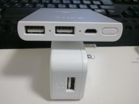バッテリ本体はUSBを2ポート備えており、合計2.1A出力が可能です。