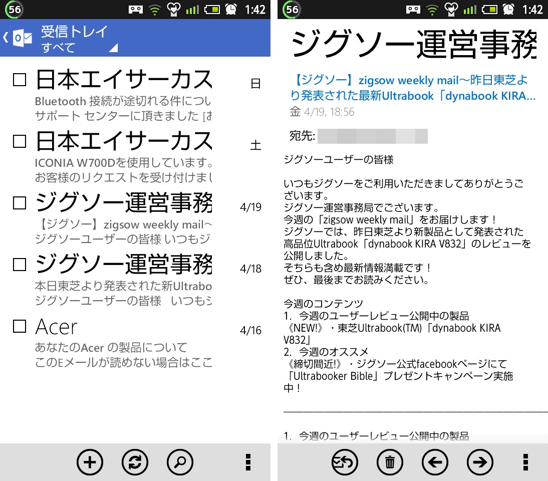 とはいえ、Hotmailの頃よりは使い勝手は上がっているので、長らく愛用できそうなアプリです。
